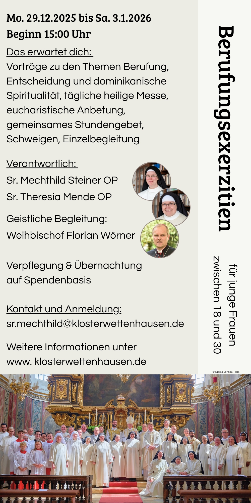 Zur Klärung der Berufungsfrage ist es oft hilfreich sich mit anderen Menschen auszutauschen, die schon ihrer Berufung zum geistlichen Leben folgen. Darum bieten wir zwei Möglichkeiten der Begleitung an: