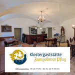 Die Klostergaststätte „Zum Goldenen Pflug“ hat geöffnet und lädt zum Genießen und Verweilen ein. Auch während der Neugestaltung des Klosterhofs bleibt der Klostermarkt ein idealer Treffpunkt zum